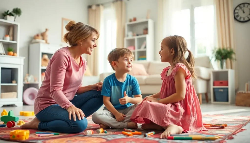 Encouraging open dialogue fosters understanding among siblings. Parents can facilitate discussions where each child shares their feelings regarding conflicts. Validating emotions helps siblings feel heard and reduces hostility. Using “I” statements promotes more constructive conversations, such as “I feel upset when you take my toys.” Practicing active listening ensures that siblings engage respectfully, creating a harmonious environment. Regular family meetings, where everyone shares their thoughts, can keep communication channels open. These techniques help children develop conflict resolution skills, enabling them to manage future disagreements effectively.